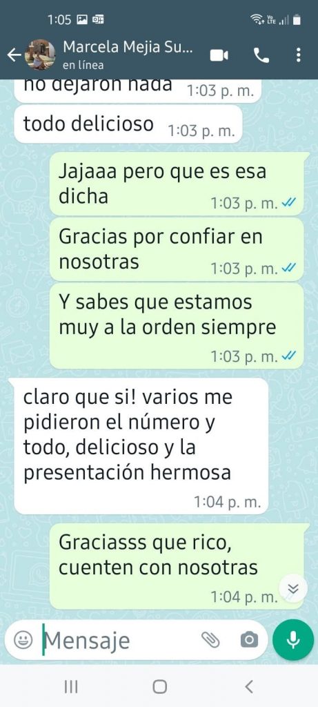 Para tus celebraciones familiares, sociales y laborales te ofrecemos nuestro servicio de catering a tu medida. Contamos con aliados con los que te brindaremos el mejor servicio con meseros profesionales, alquiler de vajillas, samovares, mobiliario, entre otros, de acuerdo con tus necesidades. Cotiza con nosotros al WhatsApp: